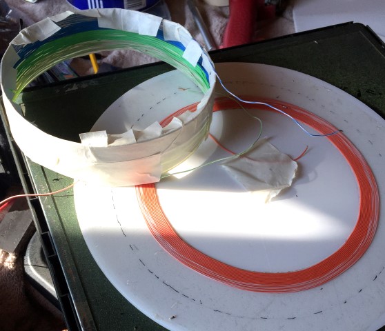 After a few different types I settled on my multi Stonehenge design with 24AWG enamelled copper, it made a small narrow coil that seemed to work fine.