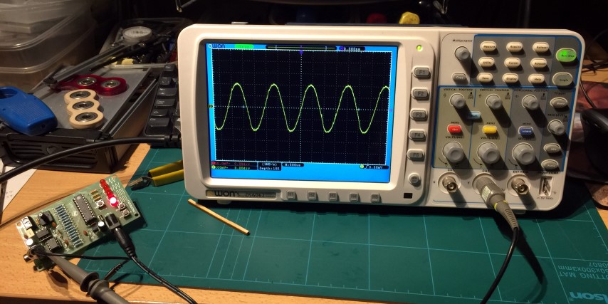 The induction characteristics of this coil need to be around 300uH (lots of little Henries) and I didn’t have any way to measure this. Having an oscilloscope I went off down the route of using a function generator and built a kit from Maplin.