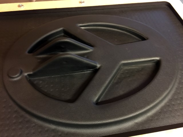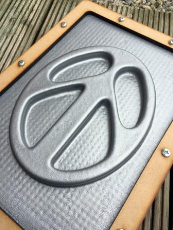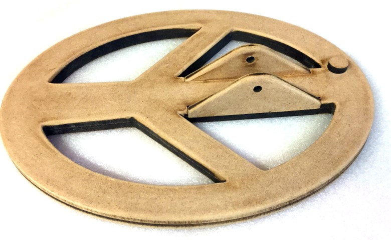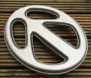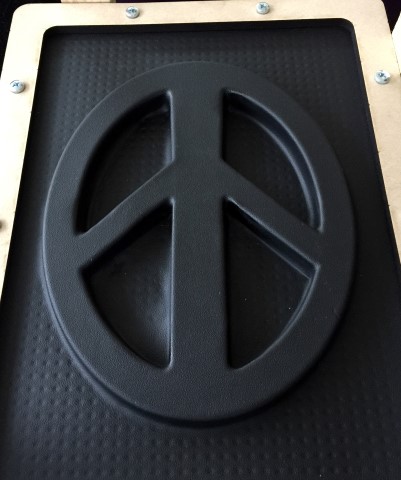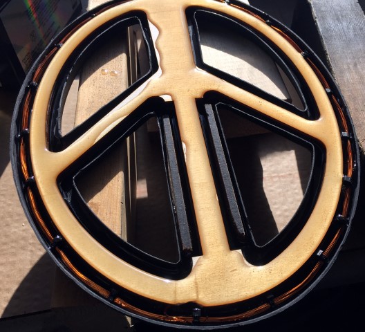 The forms were from two layers of 9mm MDF and lightly sanded on the sharp edges. Yes, I know it looks like an advert for the Campaign for Nuclear Disarmament, but it’s NOT (Atoms for Energy OK).