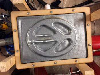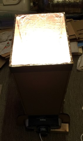 The heat source was a cheap halogen heater. I made the cover to distribute the heat evenly over the ABS plastic, heater being A4 size and plastic A3. Kitchen foil on the inside and it’s cold to touch when on.