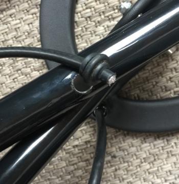 Spraying the crutches black didn’t work so used a couple strips of PVC heat shrink to cover them, looks better and adds some protection. Used grommets where I could.