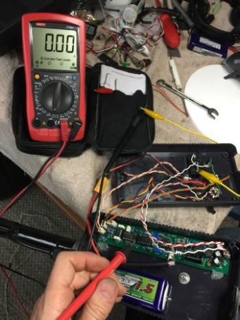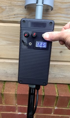 The box for the electrics was a Dell external power supply. Lasered the holes for audio socket, charge socket, voltmeter, volume and sensitivity controls plus a push button for the voltmeter display. It’s using a Lipo battery pack so don’t want the voltage going too low.